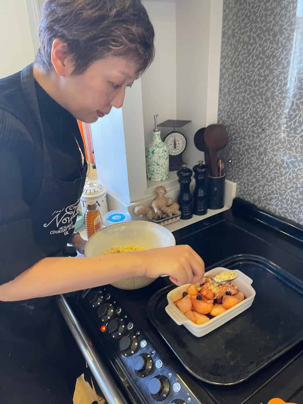 イギリスの伝統菓子、アップルクランブルとチョコブラウニーを作りました。ホストマザーも私も子育て中の主婦でもあり、料理は慣れているので、2人とも手際が良く、あっという間に完成することができました。