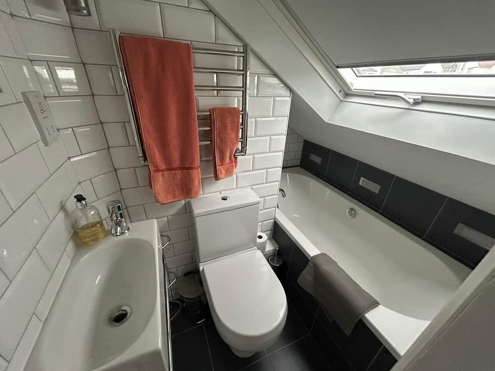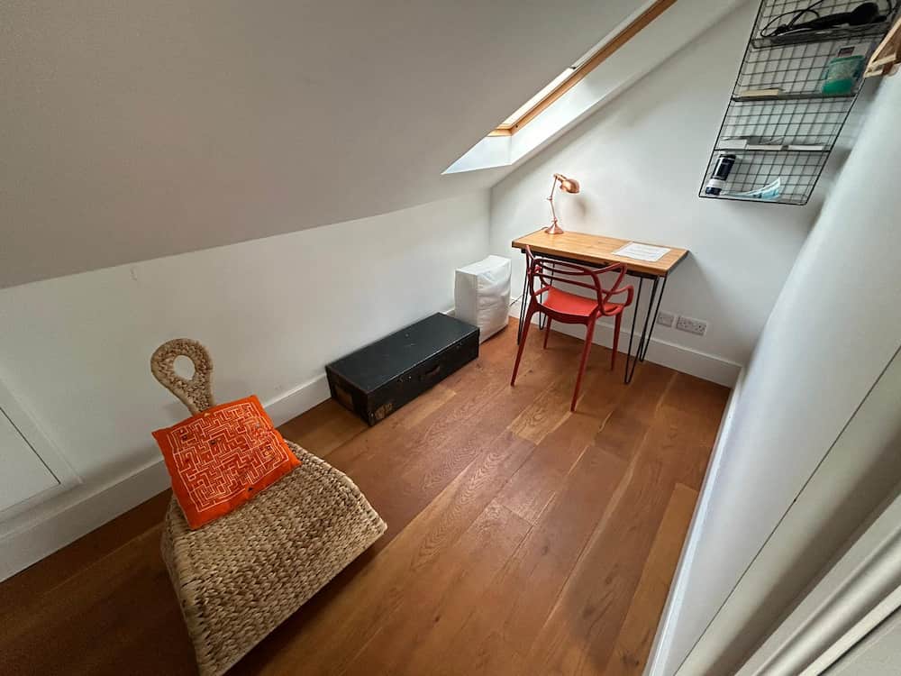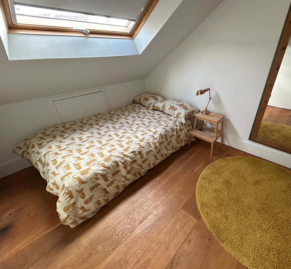 部屋はとても快適で、日本では見ない部屋でした。屋根裏部屋で天井には窓があって、そこから見る景色が好きでした。トイレやバスルーム付きの部屋でしたが、シャンプーやボディソープなどはありませんでした。バスルームの天井はとても低かったので洗いにくさはありました。先生にシャワーの温度調整のやり方を教えてもらったのですが、けっこう難しかったです。