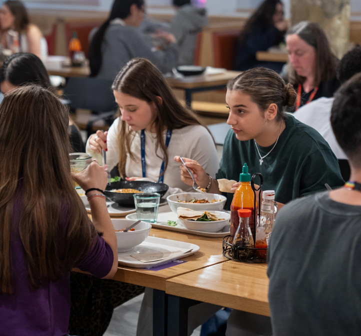 食事は3食提供されます。メニューは生徒の多様性を反映し、全食事でベジタリアン、ヴィーガン対応の選択肢を用意しています。朝食にはフルーツ、シリアル、トースト、温かい料理、夕食にはメインディッシュの複数選択肢、デザート、サラダバーが提供され、エクスカーションの日はパックドランチが用意されます。アレルギーや食事制限がある場合は、事前にご連絡ください。